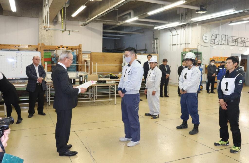HOME > お知らせ一覧 > お知らせ > 長崎県の技能競技大会で表彰を受けました長崎県の技能競技大会で表彰を受けましたby azborn2023年11月28日2023年11月28日 2023年11月25日(土)に開催された長崎県電気工事業工業組合主催の「第53回技能競技大会」において、当社より髙野厚志さん、そして本大会で唯一の女性参加者となった出口玲海さんの2名の社員が出場し、他の選手とともに配管技術等の速さ正確さを競いました。結果、髙野厚志さんが優勝、出口玲海さんが3位に、それぞれ入賞を果たしました。優勝された髙野厚志さんは来年開催される全国大会へ進出、出場する予定です。