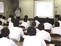 平成30年6月21日(木)、長崎県立大村工業高等学校の電気科の生徒約40名が、工場見学のため当社時津事業所に来社されました。この工場見学は、生徒の皆さんに、専門教科の学習とものづくりの現場との関連を理解して頂くとともに、地元企業の理解と進路決定の助けとすることを目的に実施されたものです。
