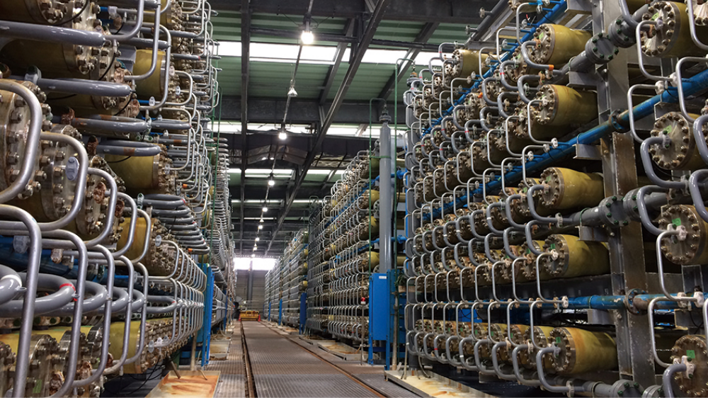 淡水化プロセスで発生する高圧海水のエネルギーを回収することで、省エネを実現しています。