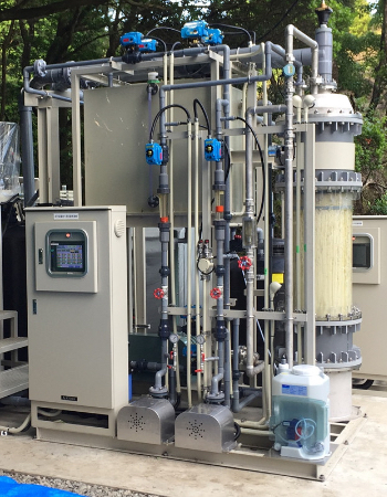 下水処理水再利用の当社試験設備にてUF膜の前処理として使用