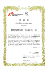 当社の社会貢献活動の一環として、認定NPO法人「国境なき医師団日本」を支援するため寄付を致しました。これに対し、この度、正式に感謝状を頂きました。ささやかではございますが当社の支援が、世界各地で行われる「国境なき医師団」の医療・人道援助活動の一助になれば幸いです。