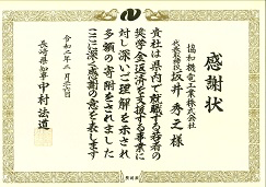 当社はこのたび、長崎県より、産業人材育成基金に関する支援を行ったとして感謝状を頂きました。